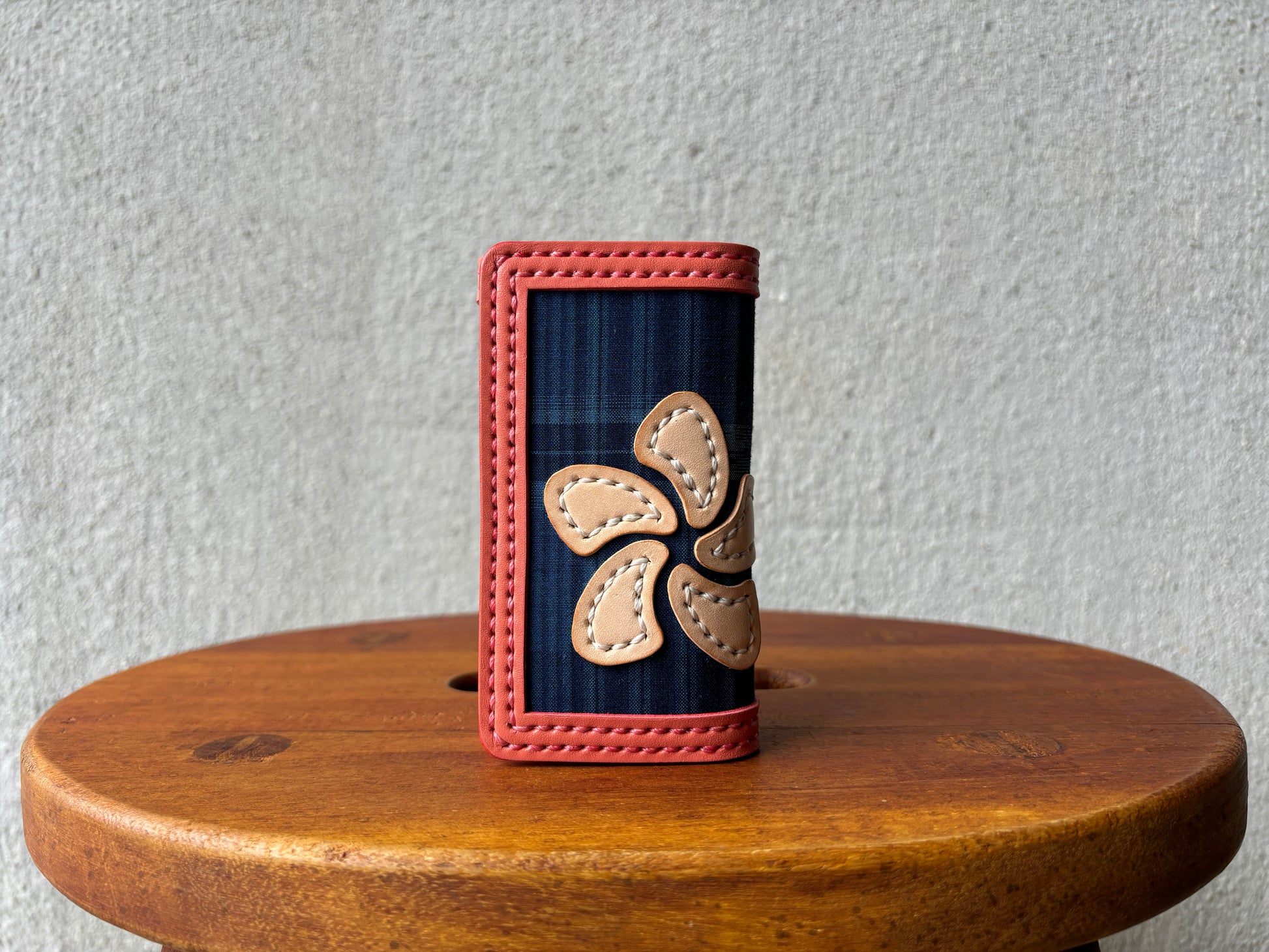 素材:琉球美絣(天然灰汁発酵建て琉球藍染、木綿) ヌメ革